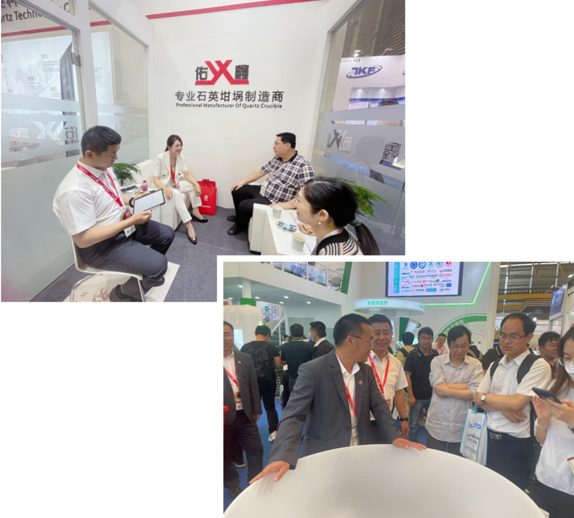 展會(huì)現(xiàn)場人流如潮,盛況空前。行業(yè)同仁相聚一堂共同探索光伏新能源行業(yè)的創(chuàng)新發(fā)展之路。佑鑫公司作為光伏產(chǎn)業(yè)鏈條中的一員,也積極參加了本次盛會(huì)。優(yōu)秀的產(chǎn)品,專業(yè)的技術(shù),卓越的服務(wù)一直是佑鑫公司秉承的理念。在此感謝每一位蒞臨佑鑫石英展臺(tái)的新老朋友及合作伙伴們,是你們給了我們持續(xù)創(chuàng)新發(fā)展,爭做高品質(zhì)石英坩堝行業(yè)領(lǐng)跑者的動(dòng)力!